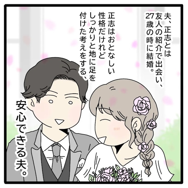 私は理恵。夫の正志とは友人の紹介で出会い、27歳の時に結婚しました。正志はおとなしい性格だけれど、しっかりと地に足をつけた考えをする安心できる夫です。