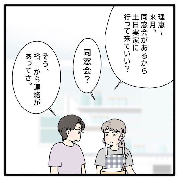 そんなある日、正志が「来月、同窓会があるから土日に実家に行って来ていい?」と聞いてきました。突然だったので驚いて「同窓会?」と聞き返すと、「そう、裕二から連絡があってさ」と教えてくれました。裕二さんは正志の幼なじみで親友で、私も何度か会ったことがあります。