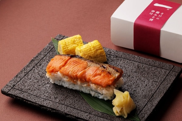 同時発売となる「蔵みそ焼 さけ寿司」1,200円(税込)は、西京漬けのさけを酢飯の上にのせ、押し寿司風に仕立てた新商品だ。