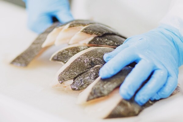 魚の状態を一尾ごとに見極め、盛り付けた際の美しさまでを見据えて職人が手作業で切り分けている。盛り付けた際の美しさまでを見据えた切る技術は、長年培われた経験と感覚によるものだ。