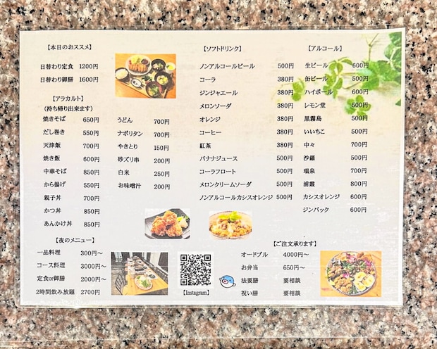 日替わり定食や御膳に加えて、焼きそばやかつ丼、ナポリタンなどの単品メニューもたくさんあります。