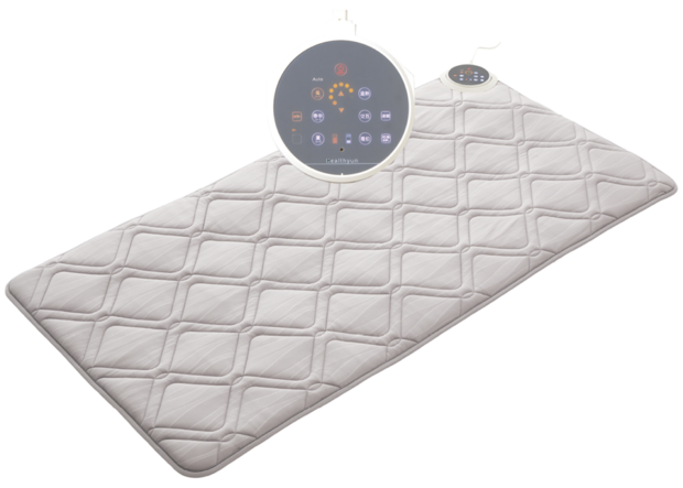 「むくみにくくなったし、人生変わった感があるくらい、これのおかげで毎日機嫌がいい人に♪」(Y)。電位治療と温熱治療を交互に繰り返すマットレスタイプの家庭用医療機器。