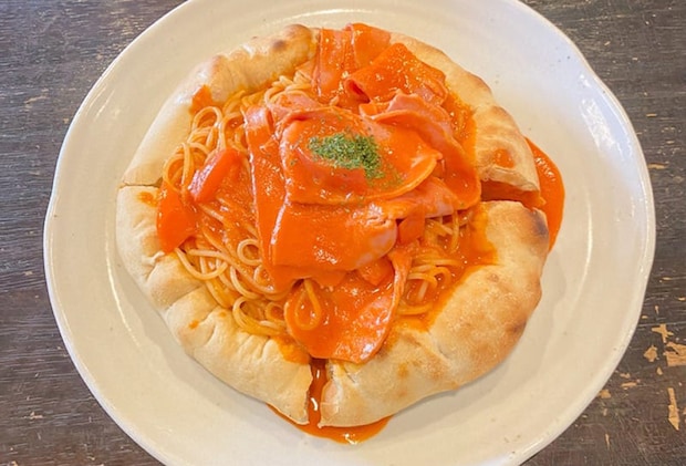 トマトソースの酸味と麺が絶妙に絡み、ベーコンの旨味がたっぷり♪麺はなんと130gもありボリューム満点!