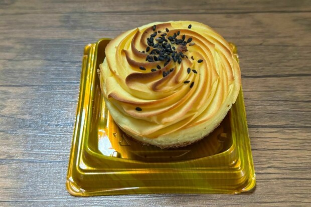 この表面のスイートポテトだけでも十分満足できる味わいです。天面の黒胡麻もいい味のアクセントになっています。