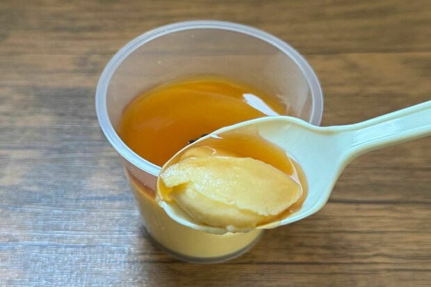 ベースのカスタードプリンは、やや固めの仕上がりで程よい甘さです。