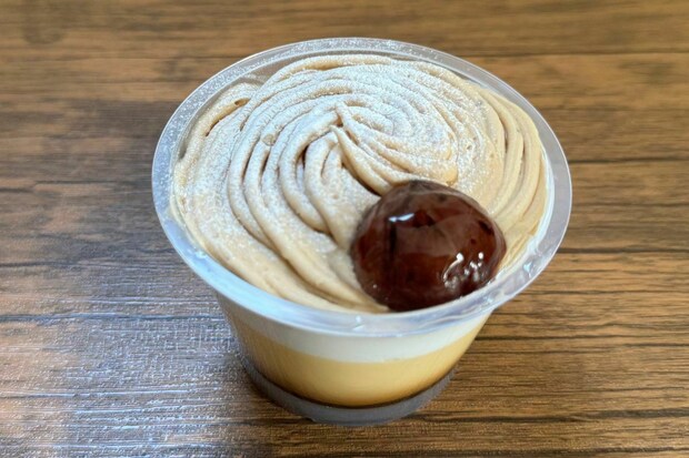 シンプルなカスタードプリンをベースに、ホイップクリームとマロンクリームをしぼって、渋皮栗をトッピングした一品です。