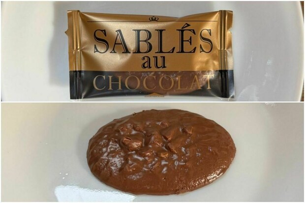 金色のパッケージのサブレは、口どけの良い生地にヘーゼルナッツを混ぜてミルクチョコをかけた「サブレ・オ・ショコラ(ミルク)」。