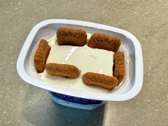 今回用意したのはグリークヨーグルトとビスケット。そして少しアレンジを加えるため、ドライマンゴーも用意しました。