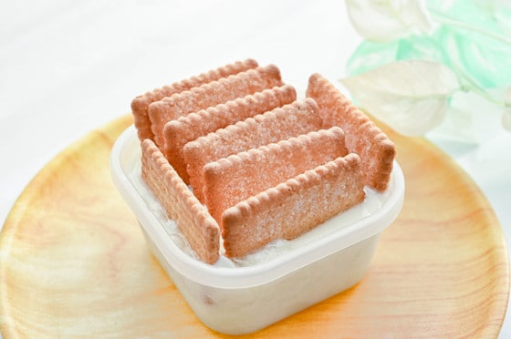 一晩経った状態がこんな感じ。ヨーグルトの水分が染み込んで、ビスケットが柔らかくなっているのがわかります。
