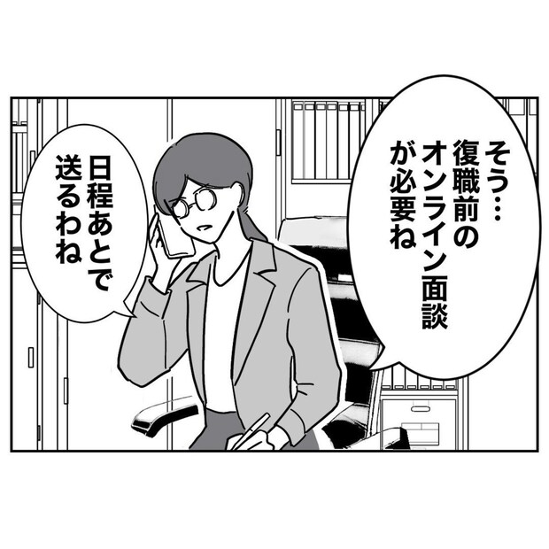まいは、電話で復職について、話している様子です。