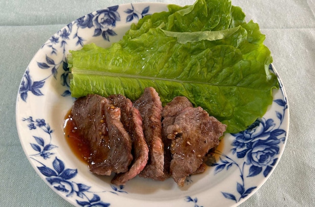 サンチュやレタスに包んで食べてみます!塩とニンニクの風味が絶品です!