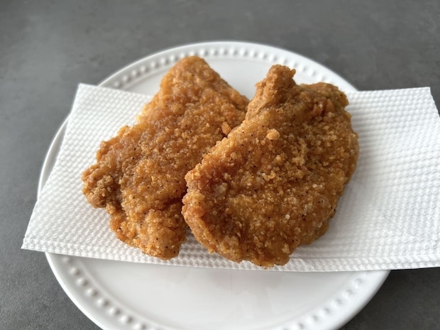 画像の左が揚げたもの、右がグリルで焼いたものです。