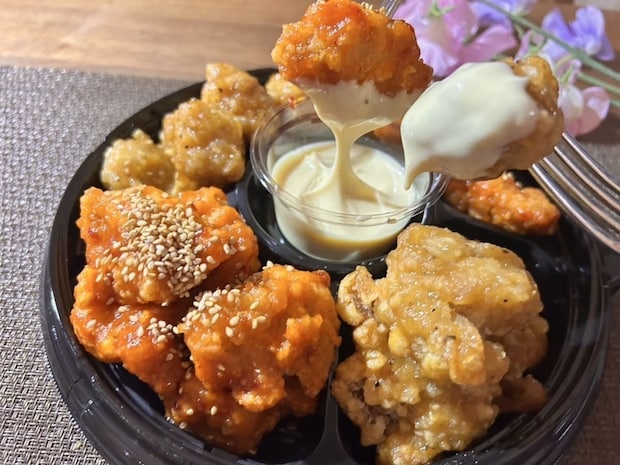 フライドチキンをチーズソースにディップして楽しむ「UFOチキン」。