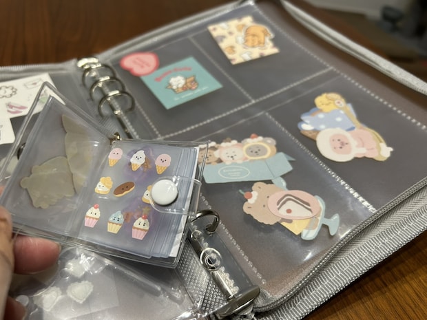 ぷっくりシールなど硬めのシールは、塩化ビニル樹脂のポケットに直接貼って剥がせます。