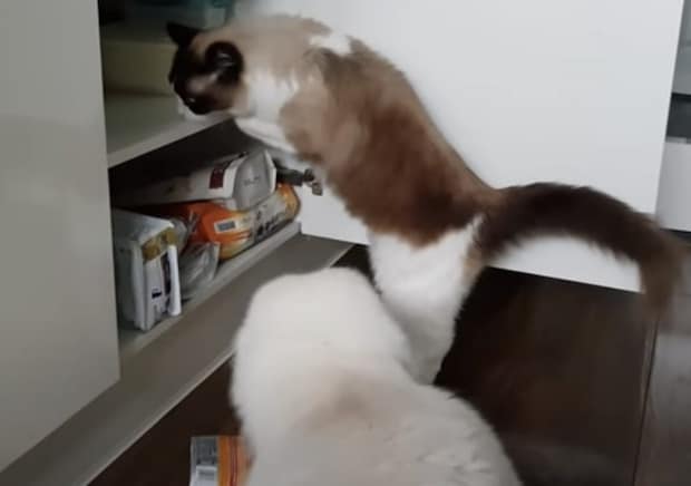 素直に飼い主さんにおやつおねだりしたら良いのに…。