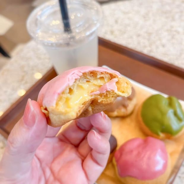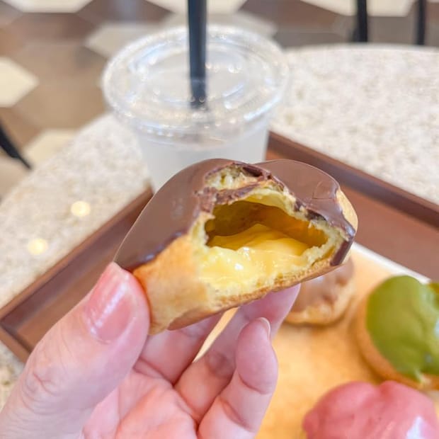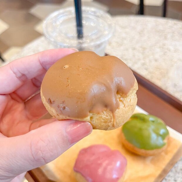 シュークリームにチョコがかかっていて、5種類の味が楽しめます。