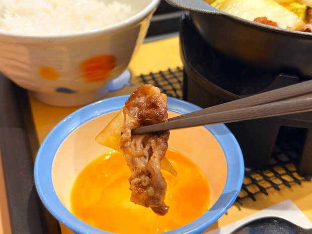割下自体はやさしい甘さが感じられますが、全体としてはあっさりと食べられるのも魅力です。お肉は香ばしく焼かれており、割下の甘さがまろやかに包み込みます。