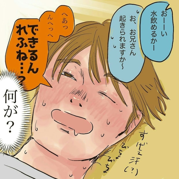 倒れていた男性は、お兄さんの声掛けにかすかに反応したものの、うまく意思疎通ができない様子。