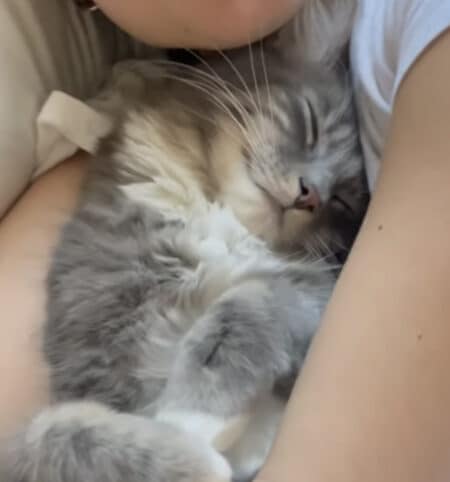 顔の近くで熟睡する猫さん。