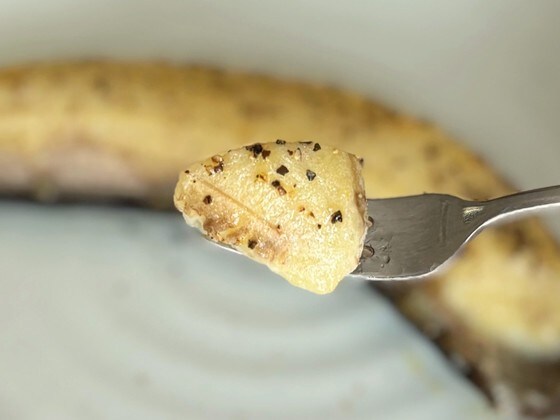 ひと口食べてまず感じるのは、バナナのぎゅっと濃縮されたような甘み。あとからブラックペッパーのピリッとしたスパイシーさを感じます。今までに食べたことのないような味と食感ですが、それがクセになるおいしさです。