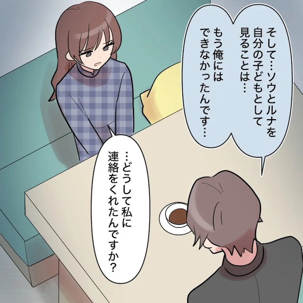 「そして・・ソウとルナを自分の子どもとして見ることは・・もう俺にはできなかったんです・・」ナオキさんんの言葉を聞いて、「・・どうして私に連絡をくれたんですか?」とたずねると、
