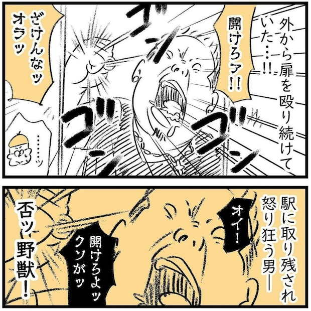 そのとき、ホームには強面の男性が取り残されてしまい、怒りにまかせてドアを激しく叩き始めました。さらに、駅員に向かってドアを開けるように威嚇する様子も見せます。その姿を見たトンさんは、「もしこの男性が車内に戻ってきたら、自分に怒りが向けられるのではないか」と不安でたまりませんでした。