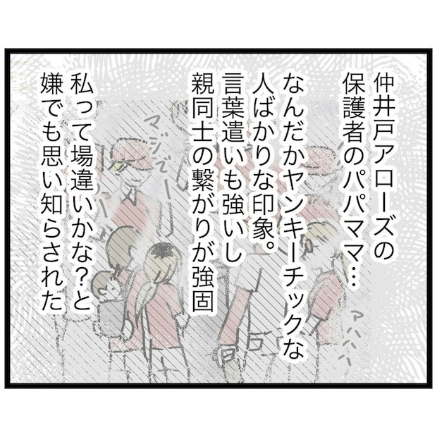 チームにはヤンキー風の保護者が多く、親同士は深い人間関係を築いているようでした。そんな雰囲気の中、インドア派のもっつんさんは場違い感に包まれ、会話にも入れずひとりぽつん。