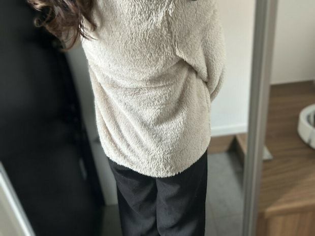 薄手で軽い素材なのに、着た瞬間からじんわりと体を温めてくれるのが特徴。
