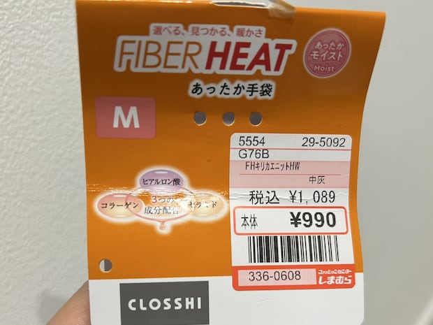 「FIBER HEAT 桐灰インナー」は、しまむらの高機能プライベートブランド「CLOSSHI PREMIUM(クロッシープレミアム)」のアイテムで、なんと通常の「FIBER HEAT あったかモイスト」と比較して「2倍の暖かさ」を実現しています。