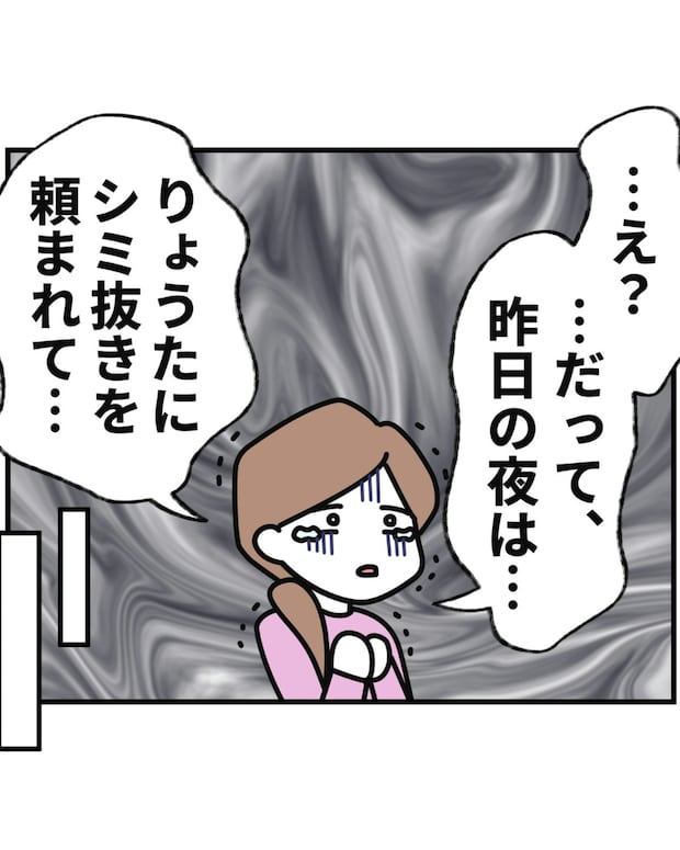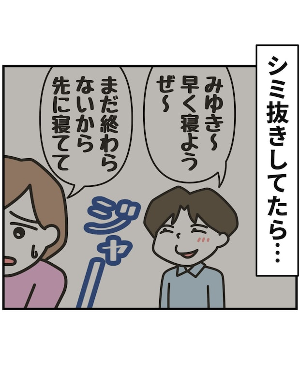 風俗に行ったのは、みゆきさんのせいだと言い出した夫。そんなみゆきさんは、昨日の夜は夫から言われてシミ抜きをしていたのです。