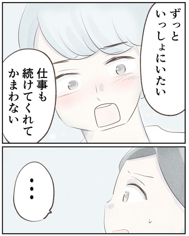 ゆうさんはタロウの勢いに押され「はい」と返事をしました。結婚を承諾したものの、ゆうさんの気持ちはまだ追いついていないように見えますね。