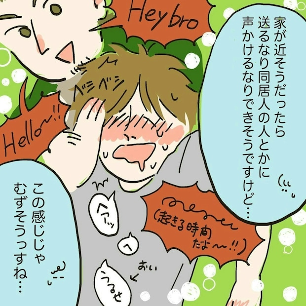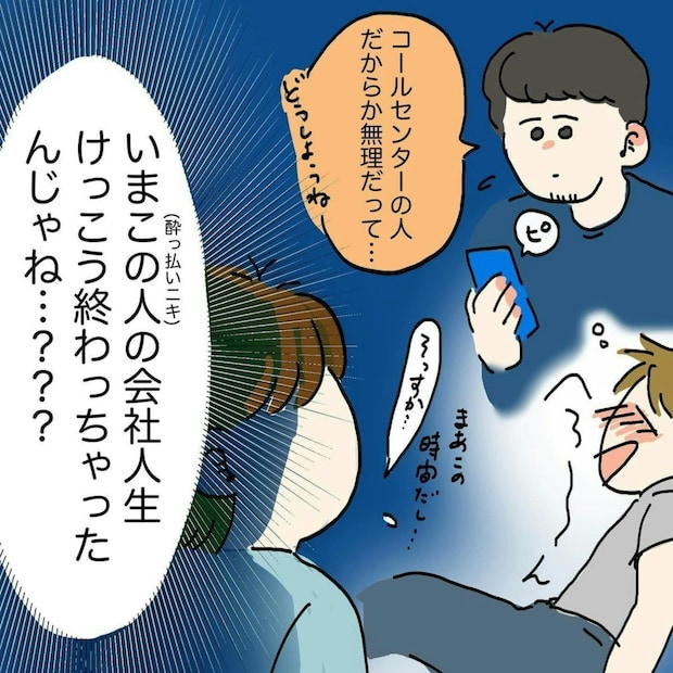 話を聞いていると、お兄さんが連絡をしているのは男性の勤め先だと思われる会社。勤め先にこのような失態が知れわたってしまうと、まずいのでは無いかと思った変貌ちゃん🍞ズボラめエッセイ漫画さんでしたが、コールセンター止まりで解決には至らず。