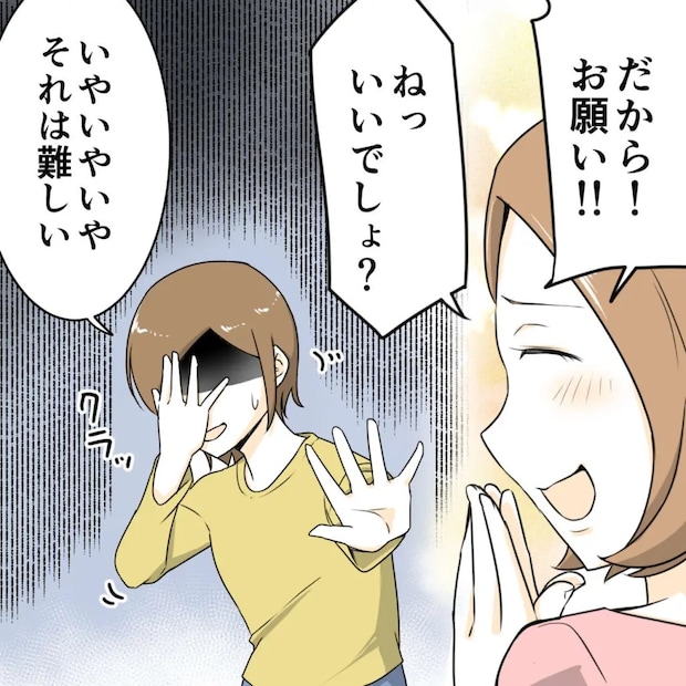 自分の都合ばかりを主張し、断られると相手が悪いかのように言うハルちゃんママ。ナミちゃんママはなんとか断ることができましたが、今度はユウちゃんママがターゲットになってしまいましたね。たまたま通りかかって巻き込まれてしまったユウちゃんママが気の毒です。