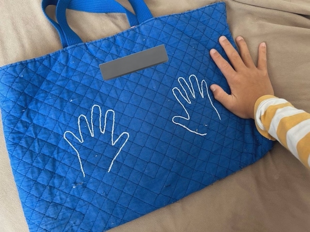 息子さんが入園する当時にだいずさんが作成したものは、わが子の手形を刺繍したバッグ。そのアイデアが素晴らしいですよね。とてもおしゃれですし、振り返ったときに成長を感じて、すてきな思い出になります。知らないうちに大きくなったわが子の手に「ジーン」と心があったかくなりますよね。