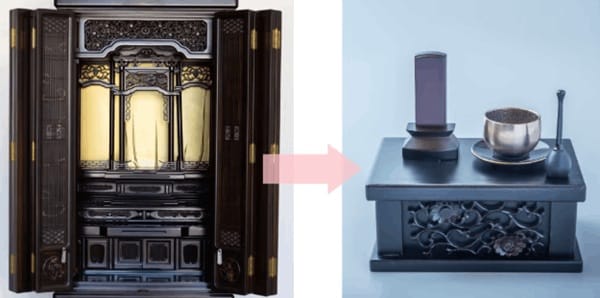 いまある仏壇の素材や部材を活かし、手のひらサイズの仏壇へとリメイク。住環境や家族構成の変化により従来の仏壇をそのまま受け継ぐことが難しい人でも、無理のないかたちで手を合わせ続けられる選択肢を提供する。また、仏壇の引き取りから供養、リメイク、納品まですべての工程を一括して対応する点も大きな特長。