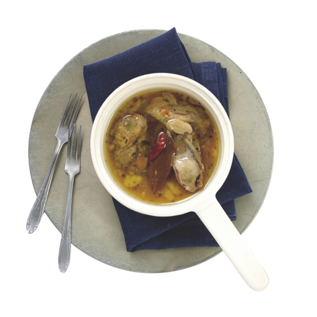 瀬戸内海で水揚げされた牡蠣を風味豊かなグレープシードオ イルで煮たアヒージョ。ワインやビールのおつまみに最適。¥579(紀ノ国屋)