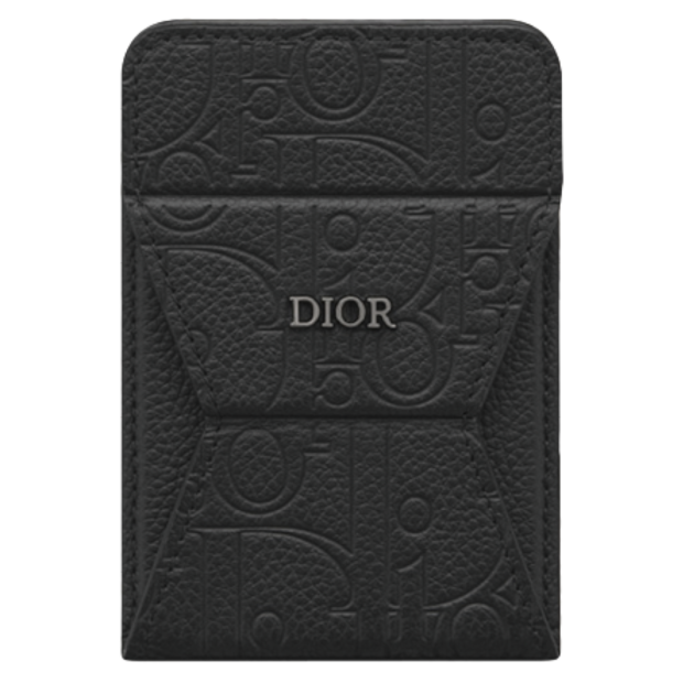 エンボス加工で「ディオール オブリーク」モチーフを配したカードホルダーは、スタンドにもなる優秀な一点。