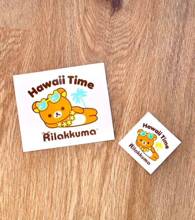 リラックマのステッカー〈大〉$4、〈小〉$3(Moni Honoluluにて販売)