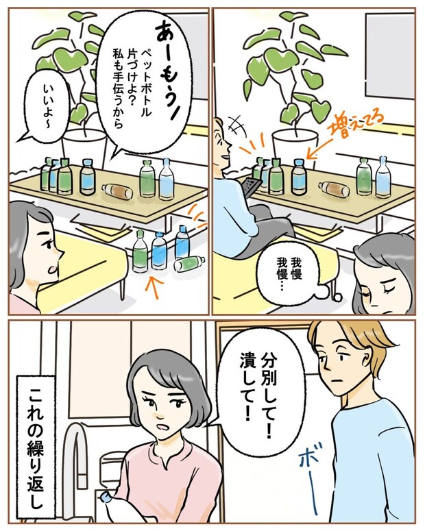 ![何度言っても片づけないペットボトル。我慢比べを始めたら床まで侵食してきた。夫の嫌いなところ[1]|ママ広場マンガ](https://assets.mama.aacdn.jp/contents/27/2025/9/1758949532351_q4nb640wgu.jpg?maxwidth=620)