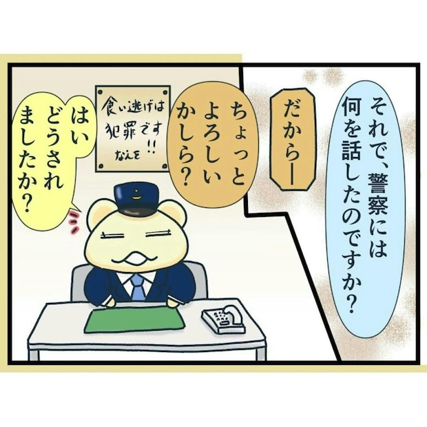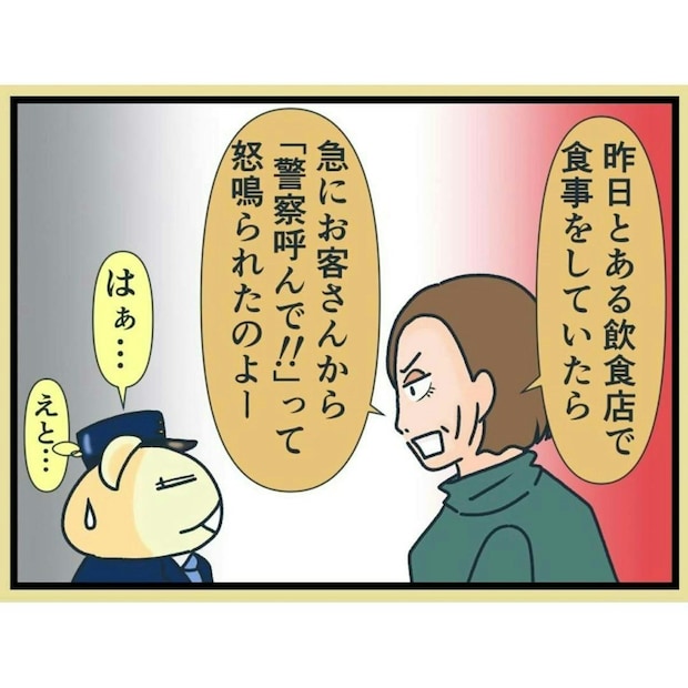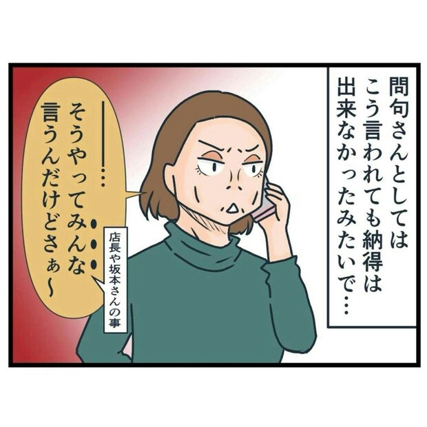 問句さんがしつこくにらみ続けた結果、ついにトラブルが発生。女性客は「警察を呼んで!」と言います。この場は何とかおさめたものの、後日、問句さんからお店に連絡が入ります。