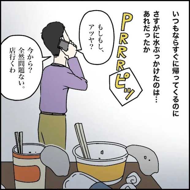 37.2℃の微熱で寝込んでいたタカシさんに水を頼まれたスズカさんが、気を遣って常温にした水が仇となり怒り出すタカシさん。すると突然、スズカさんは頭から水をかけられて言葉を失いました。「お前調子乗んなよ」と言った後、「離婚しよ。お前なんかいらねーわ」と言うタカシさんの言葉に何も答えず、スズカさんはそのまま部屋を後にしました。