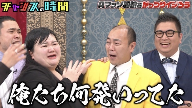 千鳥がMCを務める「チャンスの時間」(毎週日曜夜11:00、ABEMA SPECIAL)の#345が、1月11日に放送。芸人たちがこれまで“誰もイジってこなかった”Aマッソの加納に真正面から挑む特別企画「Aマッソ加納をがっつりイジろう」を行った。