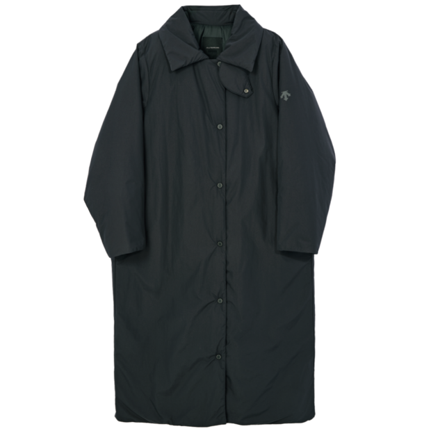 「通勤などに便利なステンカラーパフコートは、アウトドアからデイリーまで対応できるユーティリティアウトドアスポーツウェアブランド、デサントオルテラインの別注アイテム。抜群の保温性と軽量性はもちろんのこと、襟元はスタンドカラーにアレンジ可能で、冷気の侵入もしっかり防いでくれます」