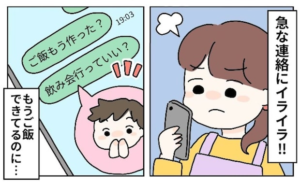 夫が飲み会の参加について突然相談してくることに対し、強いイライラを感じているPさん。そんなPさんの投稿に、ママリユーザーからはいろいろな声が寄せられました。