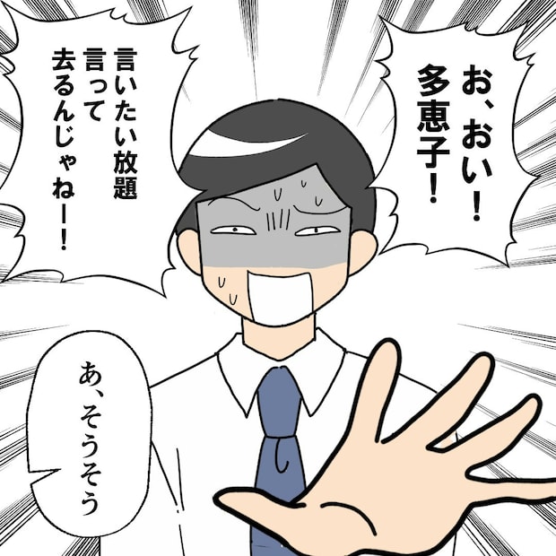 ハイスペックどころか、自分の面倒も見れない夫。「妻なんてやめる」と宣言して、多恵子は帰ろうとします。