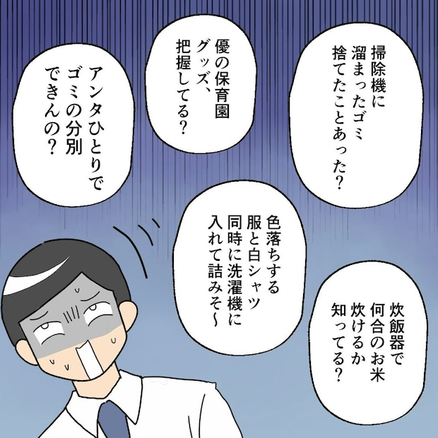 漫画の中の多恵子も、ワンオペ家事育児に奮闘しています。夫・狐生は「家事育児は妻の仕事」と決めつけ、手は動かさないのに「俺が正してやっている」と、口だけは出すモラハラ夫。それでは、口出しされなかったらいいのかというと、そうでもありません。関心がなさ過ぎて、口出しすらしない夫・亜馬斗に、ウル実が抱く不満も同じくらい深刻なのです。