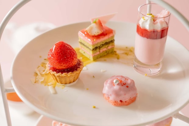 沖縄県宜野湾市のラグナガーデンホテルは1月1日~4月30日、1階のラウンジにて、「ストロベリーアフタヌーンティー」を展開中だ。価格はドリンク付き・税込み3,000円から。