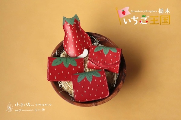 これまでも、いちごをモチーフにしたミニ財布や猫型キーケースを制作してきた。