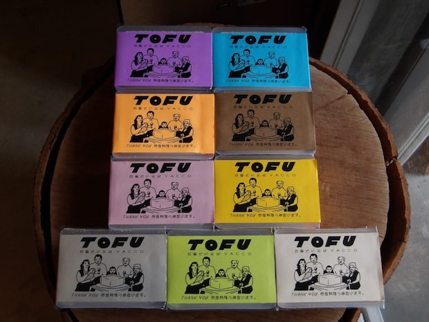 全国の豆腐を食べ歩き、特に郷土料理が多い九州の豆腐に関心を持ったという。その中でも宮崎県の菜豆腐は、野菜や前日残った佃煮を豆乳と合わせて固めたもので、無駄がないことに注目した。「菜豆腐を今っぽくアレンジできないか考えた」といい、山芋やいぶりがっこ、とうもろこしといった具材を加えた惣菜のような豆腐が誕生した。掲げるコンセプトは「0歳から100歳まで楽しめる豆腐」だ。使う素材はナチュラルなもので、添加物はにがり以外使っていないという。
