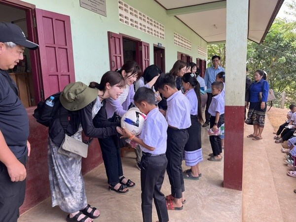 ラオス ルアンパバーン小学校では、スポーツ用具や文房具等を寄贈するといった取り組みを行った。